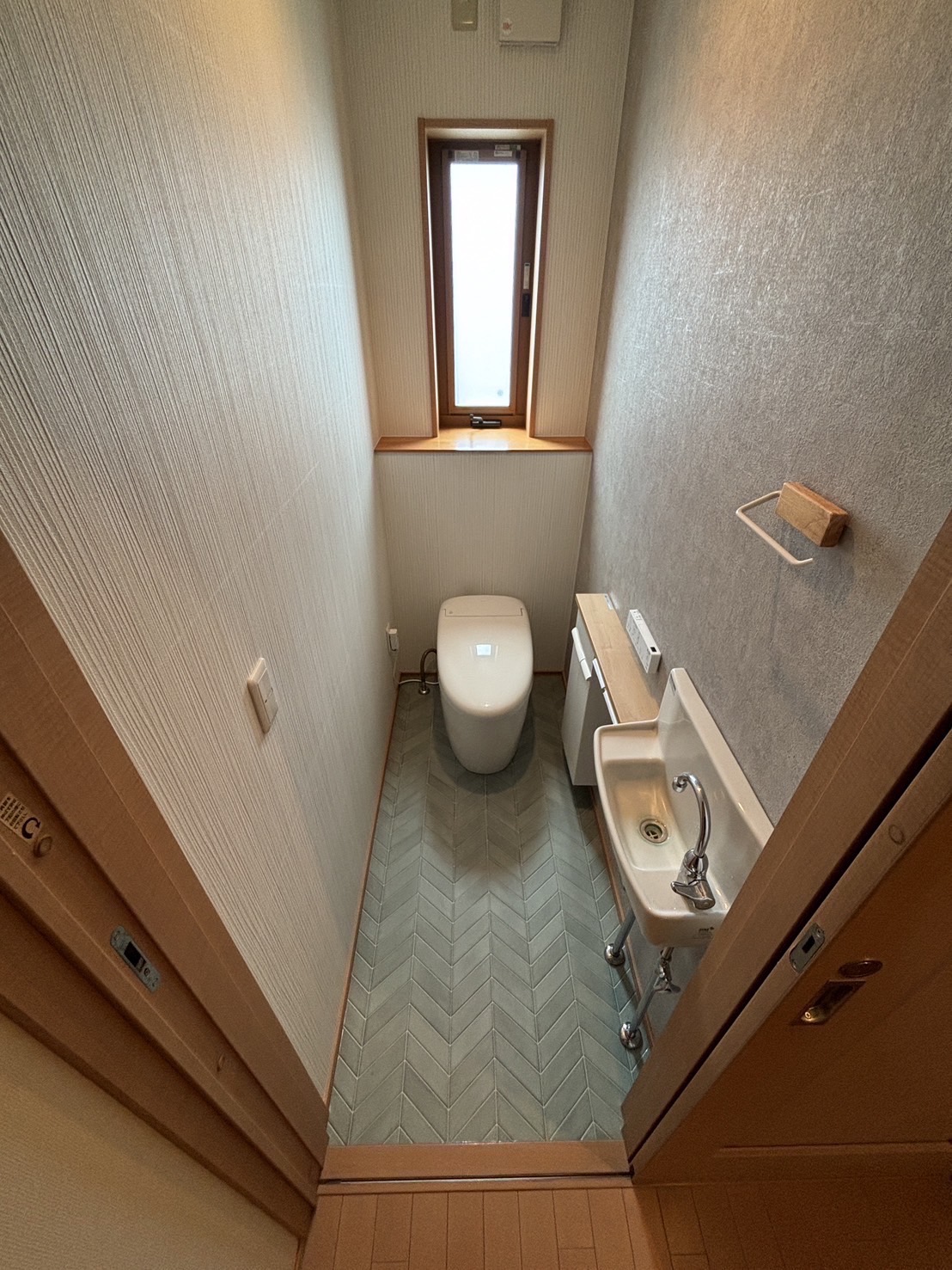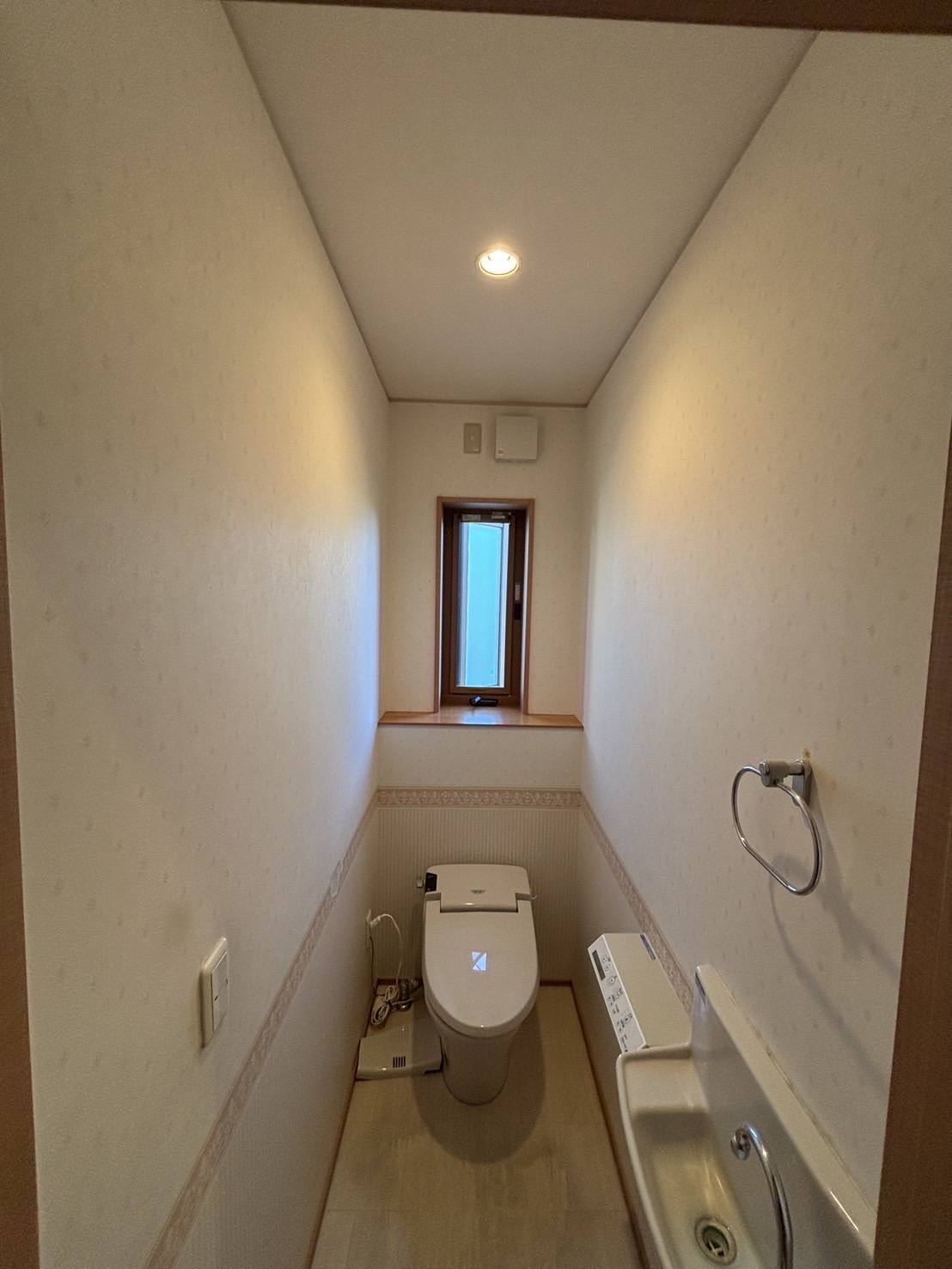 その際に、既存便器の跡が残る可能性があることや、クロス剥がれている箇所があったりもしたので、クロス、クッションフロアもあわせて交換しました。
